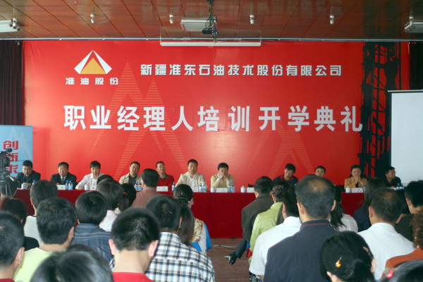 2008年5月10日在公司一樓會(huì)活動(dòng)室,伴著整齊而又氣勢磅礴的“團(tuán)結(jié)就是力量”,新疆準(zhǔn)東石油技術(shù)股份有限公司職業(yè)經(jīng)理人培訓(xùn)開學(xué)典禮拉開了帷幕。