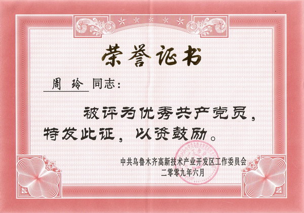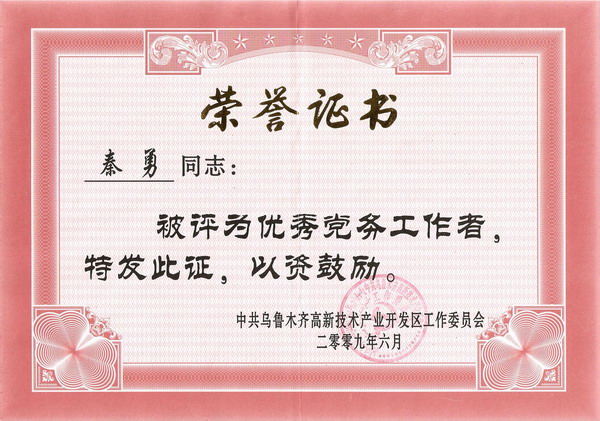 在2009年6月30日高新區(qū)召開的慶祝建黨88周年表彰大會上。準油股份董事長 黨委書記秦勇被評為優(yōu)秀黨務(wù)工作者,周玲被評為優(yōu)秀共產(chǎn)黨員。