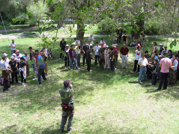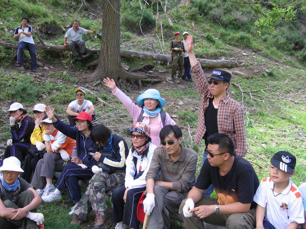 此次活動(dòng)共有60多名成員,準(zhǔn)油股份董事長(zhǎng)、黨委書記秦勇、財(cái)務(wù)總監(jiān)孫新春、總工程師簡(jiǎn)偉等領(lǐng)導(dǎo)也在其中。27日早上 9:30在指定地點(diǎn)集合完畢后,由事先安排好的車輛帶到此次徒步的出發(fā)點(diǎn)“蝴蝶谷”入口。在出發(fā)點(diǎn)我們分成了三隊(duì),一隊(duì)叫“先鋒隊(duì)”,二隊(duì)叫“勇士隊(duì)”,三隊(duì)叫“夢(mèng)幻隊(duì)”,每個(gè)隊(duì)都有一個(gè)領(lǐng)隊(duì),領(lǐng)隊(duì)是大本營(yíng)戶外的專業(yè)人員。因?yàn)橛性S多人平時(shí)可能都缺乏鍛煉的緣故,剛上路不一會(huì)就大汗淋漓,在走了到路程的四分之一時(shí),我們停下來休整了一會(huì),在休整的期間,三個(gè)隊(duì)先做了準(zhǔn)備活動(dòng),因?yàn)楹竺娼又€有競(jìng)賽游戲,各隊(duì)的人員都是信心滿滿、躍躍欲試。在游戲當(dāng)中我們不光感到快樂,還感受到團(tuán)隊(duì)的真正含義,每個(gè)人都在為完成任務(wù)而想方設(shè)法,當(dāng)然最后還是在大家的歡笑聲中開始了下一段征程。