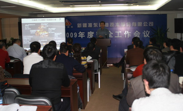 2月21日下午3點,新疆準(zhǔn)東石油技術(shù)股份有限公司2009年安全工作會議,在烏魯木齊市盈科國際中心26樓公司會議室召開。會議由公司副總經(jīng)理王金云主持,公司安委會主任、董事長秦勇,公司安委會副主任總經(jīng)理常文玖和副總經(jīng)理王玉新,以及陶煒、沙克洪、孫新春、簡偉、周維軍等領(lǐng)導(dǎo),各事業(yè)部和控股子公司經(jīng)理、副經(jīng)理、機關(guān)各部門負責(zé)人及各單位安全管理人員共60多人參加會議。