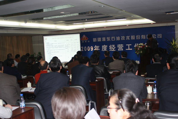 2月21日上午,在烏市盈科國際中心26樓會議室,公司總經(jīng)理常文玖主持召開了準油股份2009年經(jīng)營工作會議。公司副總經(jīng)理王金云、王玉新、陶煒、沙克洪、財務總監(jiān)孫新春、總工程師簡偉和監(jiān)事會主席、工會主席周維軍等領導參加,公司所屬各單位和子公司經(jīng)理、副經(jīng)理及兩級機關部門負責人到場參加會議。