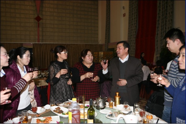 有句古話叫“無酒不成席”,今天更是如此。平時(shí)要上班,要開車,酒是不能喝的,今天有了開懷痛飲的機(jī)會(huì),又逢如此高興的日子,那興奮勁兒就不必說了。秦總、常總、王總一桌一桌的敬酒,各種感謝和祝福的話語表達(dá)了領(lǐng)導(dǎo)的深切關(guān)懷,走一桌就坐下來聊一會(huì)兒,聊這一年的付出,聊這一年的困難,聊這一年的收獲。公司其他領(lǐng)導(dǎo)也一一到各桌和員工們喝酒,帶去問候和祝福。員工們的互敬當(dāng)然更熱鬧,整個(gè)大廳觥籌交錯(cuò),歡呼聲不絕于耳。
