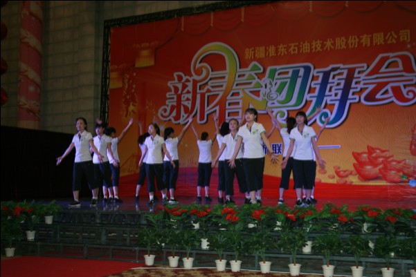 隨著領(lǐng)導(dǎo)們祝酒助興,精彩的節(jié)目開始了。首先是公司在準(zhǔn)東采油廠比賽中的獲獎(jiǎng)節(jié)目—— “健排舞”,這可是公司的保留節(jié)目,跳躍的音符、炫舞的身姿,讓現(xiàn)場(chǎng)的氣氛一下活躍了起來。緊接著各個(gè)單位精心準(zhǔn)備的節(jié)目相繼為觀眾們奉上,井下技術(shù)事業(yè)部的合唱《團(tuán)結(jié)就是力量》鏗鏘有力,氣勢(shì)磅礴;石油技術(shù)事業(yè)部研究所的小伙子們給大家?guī)?ldquo;三句半”表演,語言幽默詼諧,動(dòng)作夸張滑稽,引得場(chǎng)下觀眾陣陣大笑;工程建設(shè)事業(yè)部準(zhǔn)備的手語舞蹈——《最美好的未來》在稚氣的童聲中帶給大家陣陣感動(dòng);準(zhǔn)油運(yùn)輸?shù)木S吾爾族姑娘給大家?guī)淼囊恢璧浮犊κ补媚铩罚瑲g快的音樂,曼妙的舞姿,引來了全場(chǎng)手機(jī)攝影的一陣忙碌;在如此熱烈的氣氛的影響下,芶正安老師也忍不住上臺(tái)給大家獻(xiàn)上一首京劇名曲《沙家浜》的片段——《朝霞映在陽澄湖上》,老人家底氣十足,轉(zhuǎn)音千曲百折,氣場(chǎng)強(qiáng)大,十分有“范”兒,觀眾們聽了連呼過癮;最后,領(lǐng)導(dǎo)們的節(jié)目壓軸出場(chǎng),王總帶著領(lǐng)導(dǎo)班子用一曲《壯志在我胸》表達(dá)了帶領(lǐng)公司勇往直前的決心和信心,他們鏗鏘的語言和嘹亮的歌聲讓現(xiàn)場(chǎng)所有人都熱血沸騰。